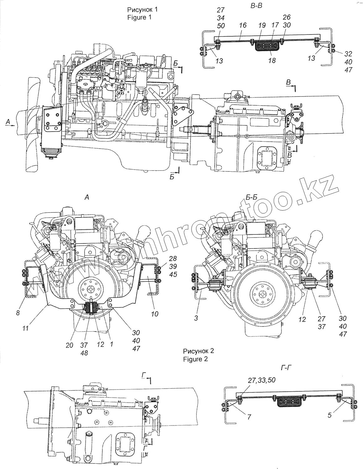 Каталог запасных частей к технике: Камский автозавод 43255 (Евро-2). 43255-1001005 Установка силового агрегата
