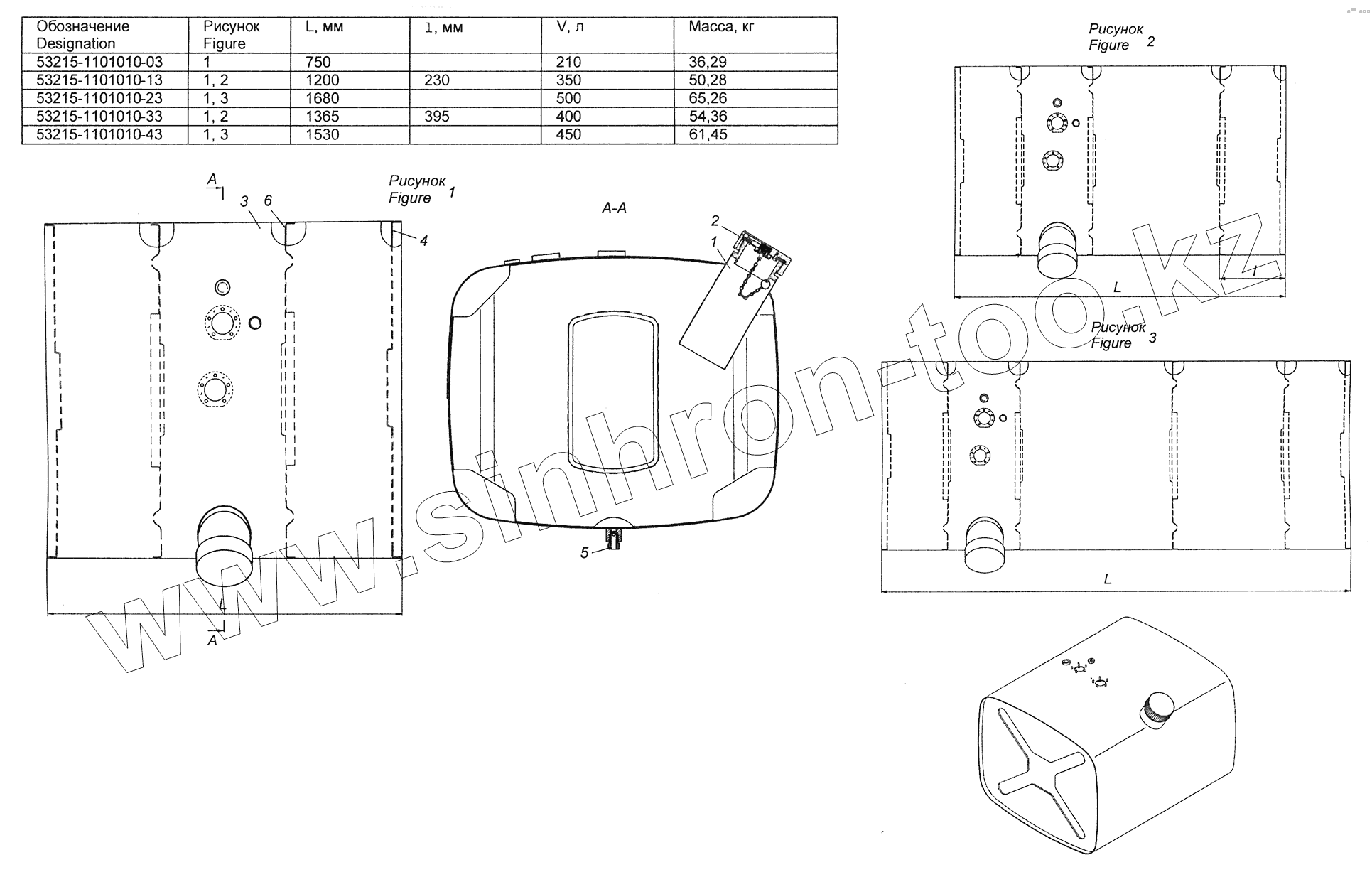 Каталог запасных частей к технике: Камский автозавод 43255 (Евро-2). 53215-1101010-03 Бак топливный