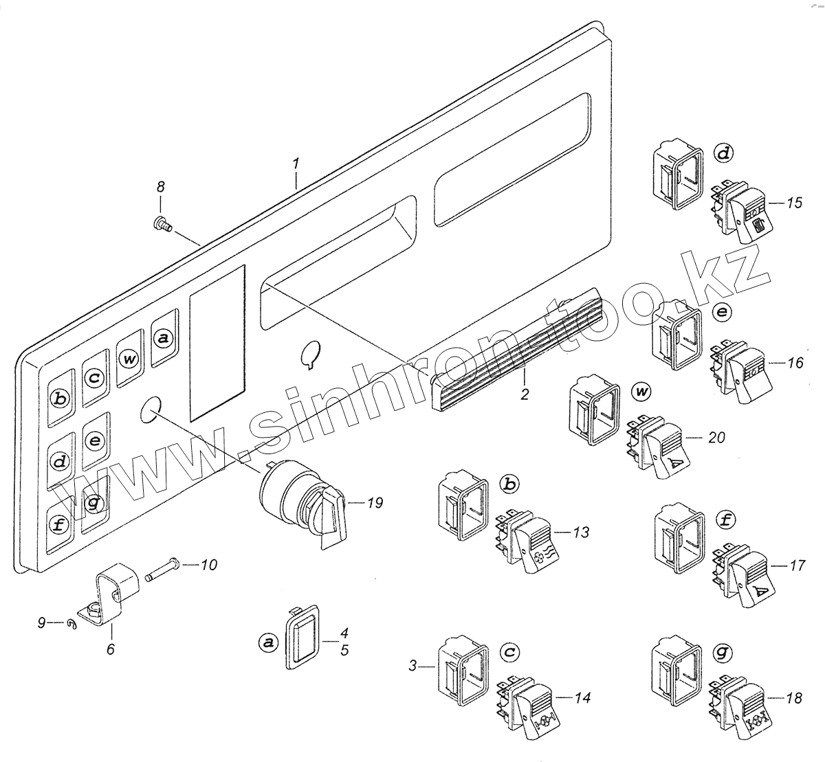 Каталог запасных частей к технике: Камский автозавод 43255 (Евро-2). 53229-3710428-28 Панель выключателей