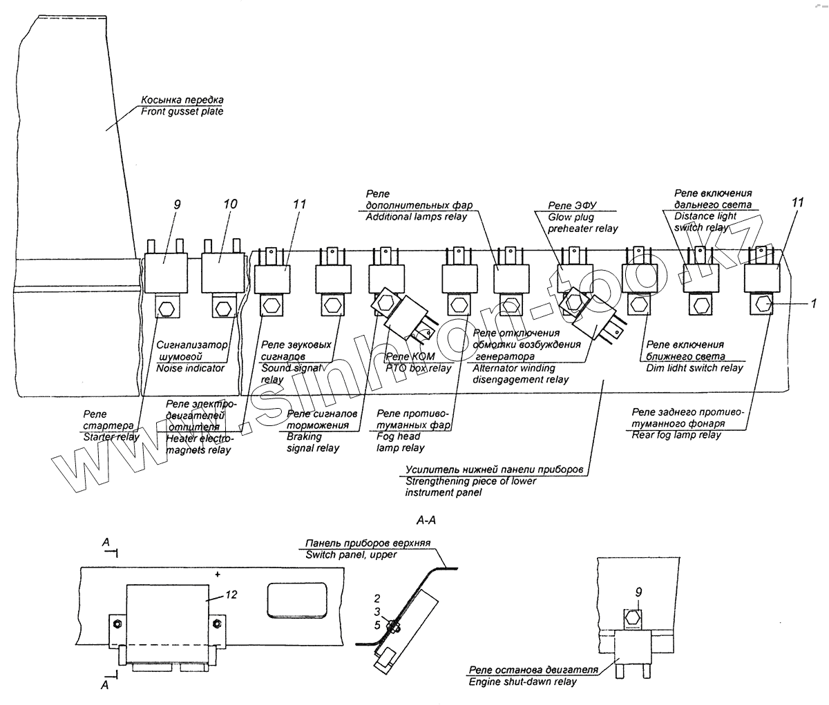 Каталог запасных частей к технике: Камский автозавод 43255 (Евро-2). 6520-3747001 Установка реле