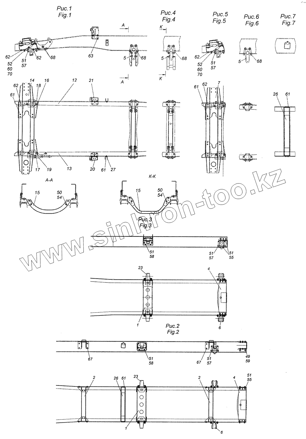 Каталог запасных частей к технике: Камский автозавод 43255 (Евро-3). 43255-2800010-55 Рама