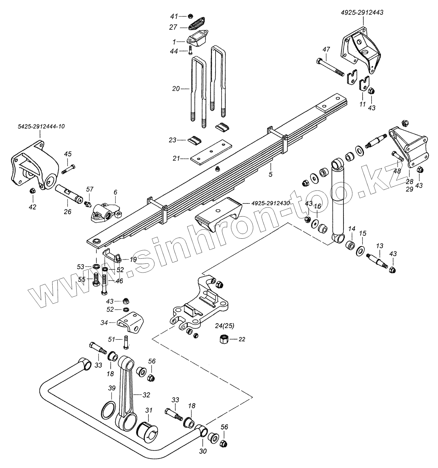 Каталог запасных частей к технике: Камский автозавод 43255 (Евро-3). 4925-2900002-01 Подвеска задняя