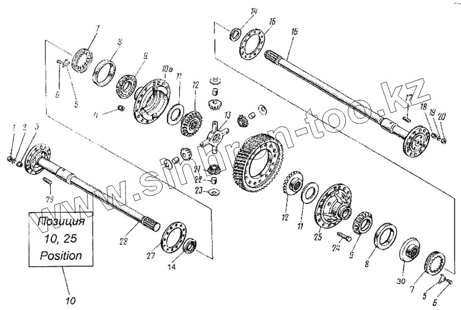 Каталог запасных частей к технике: Камский автозавод 4326. Дифференциал и полуоси моста заднего