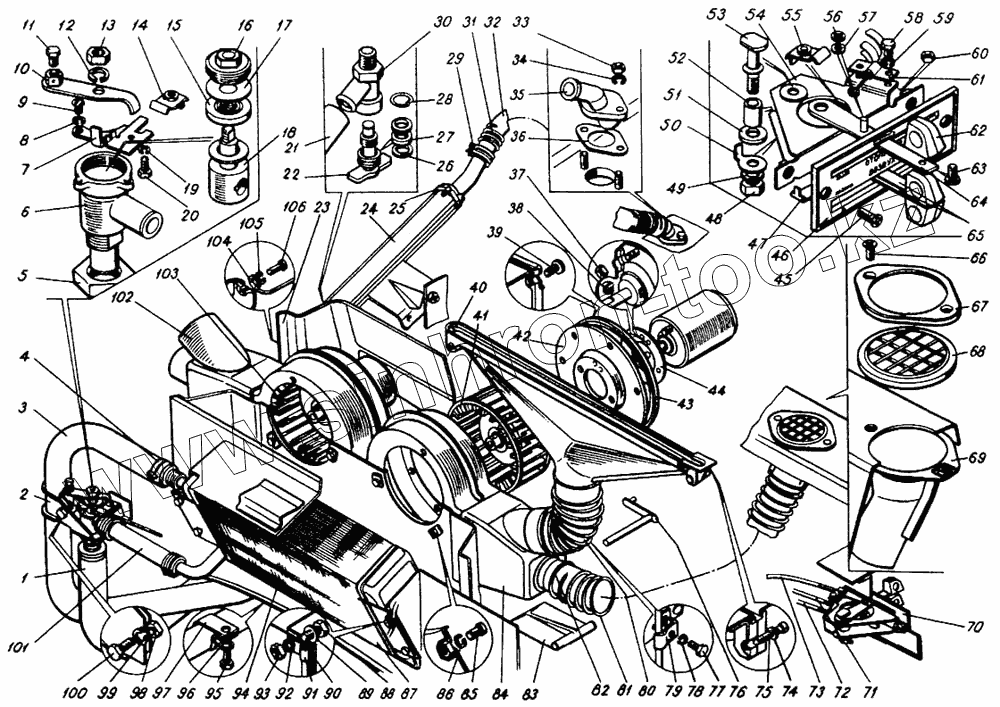 Каталог запасных частей к технике: Камский автозавод 4326. Элементы отопления и вентиляции кабины