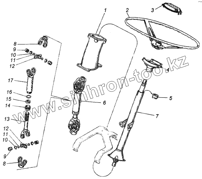 Колесо рулевое, вал карданный и колонка