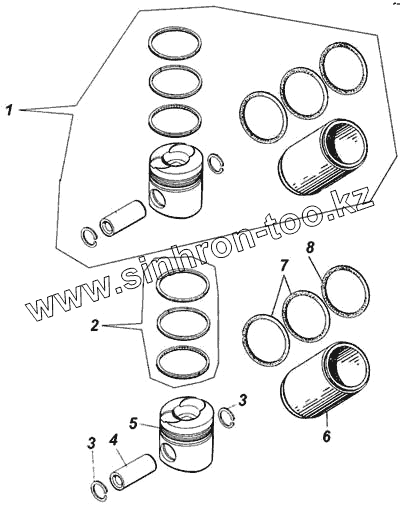Гильза цилиндров с поршнем, пальцем, поршневыми кольцами и уплотнительными кольцами гильзы