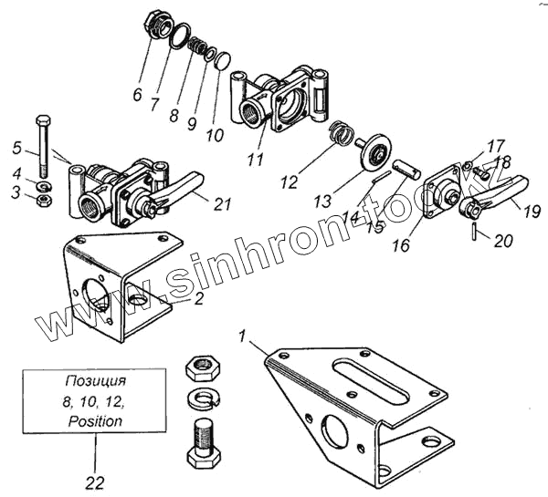 Каталог запасных частей к технике: Камский автозавод 4326. Кран разобщительный в сборе