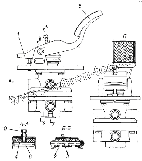 Каталог запасных частей к технике: Камский автозавод 4326. Кран тормозной двухсекционный с педалью