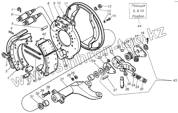 Каталог запасных частей к технике: Камский автозавод 4326. Тормоза рабочие задние