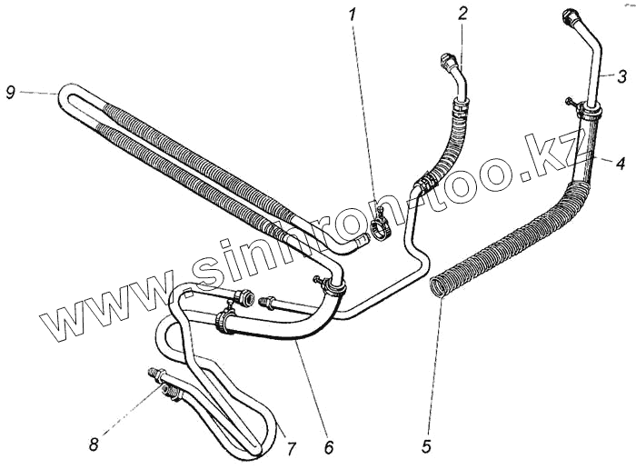 Каталог запасных частей к технике: Камский автозавод 4326. Трубопроводы и радиатор масляный гидроусилителя руля