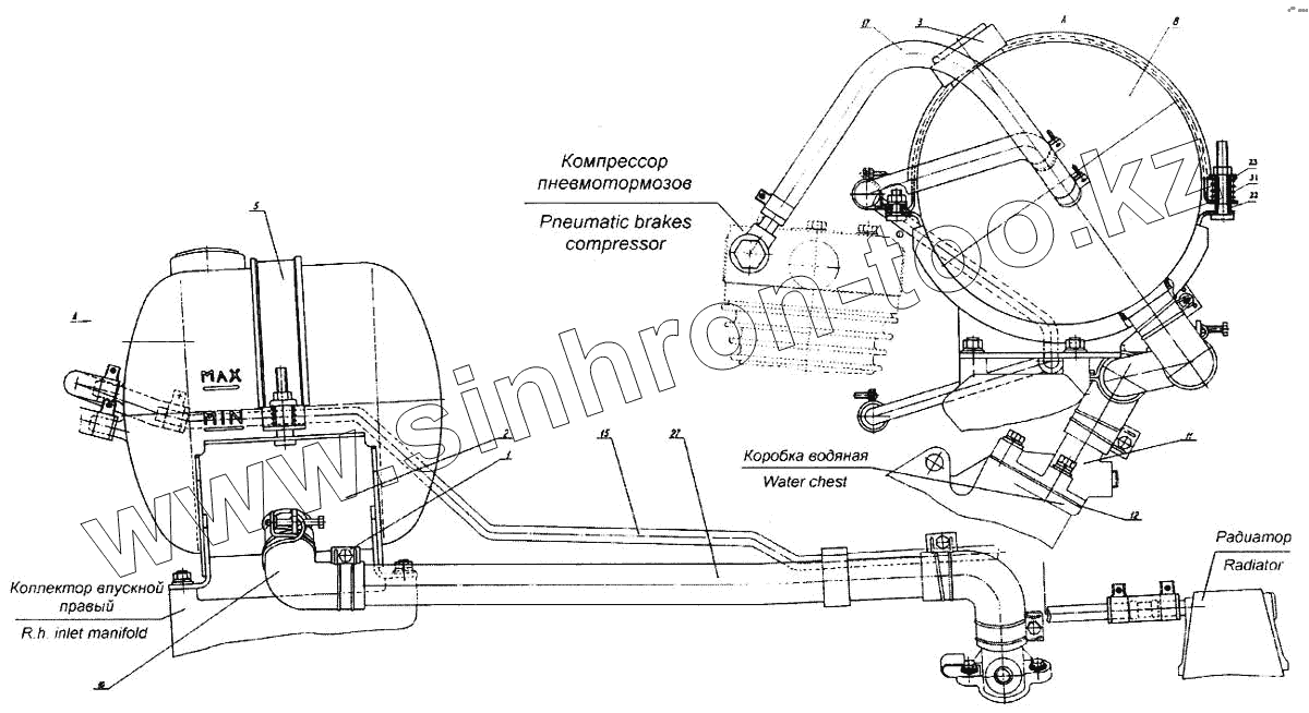 Каталог запасных частей к технике: Камский автозавод 4326. Установка расширительного бачка