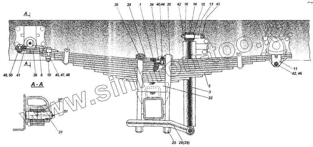 Каталог запасных частей к технике: Камский автозавод 4326. Установка задней подвески