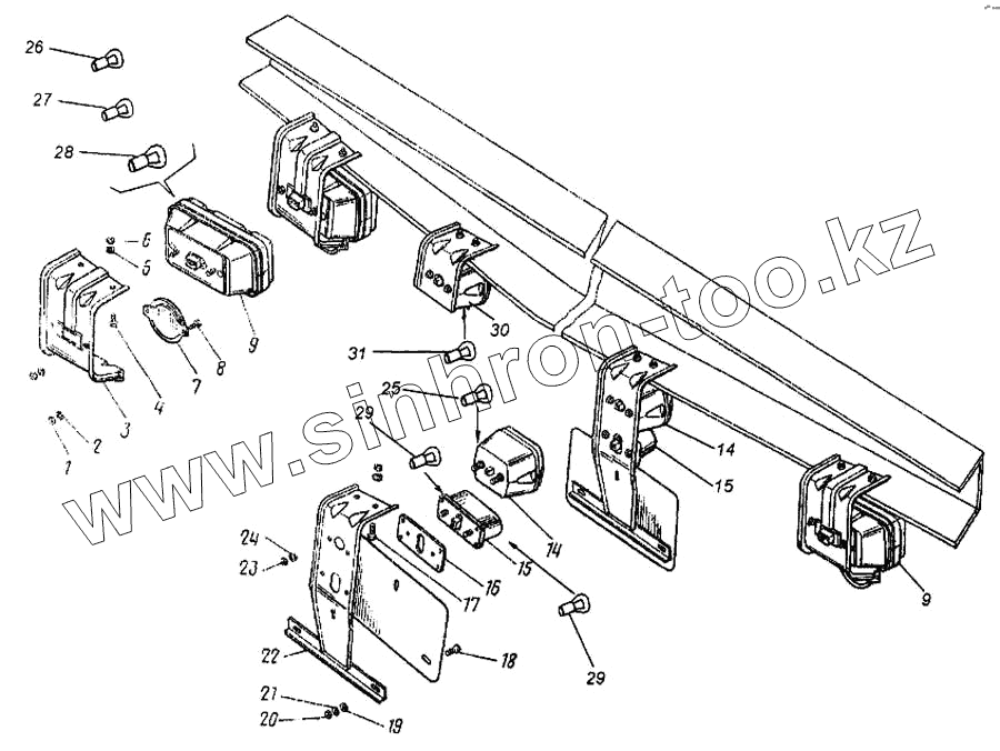 Каталог запасных частей к технике: Камский автозавод 4326. Установка задних фонарей