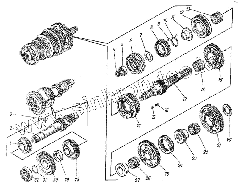 Каталог запасных частей к технике: Камский автозавод 4326. Валы и шестерни коробки передач
