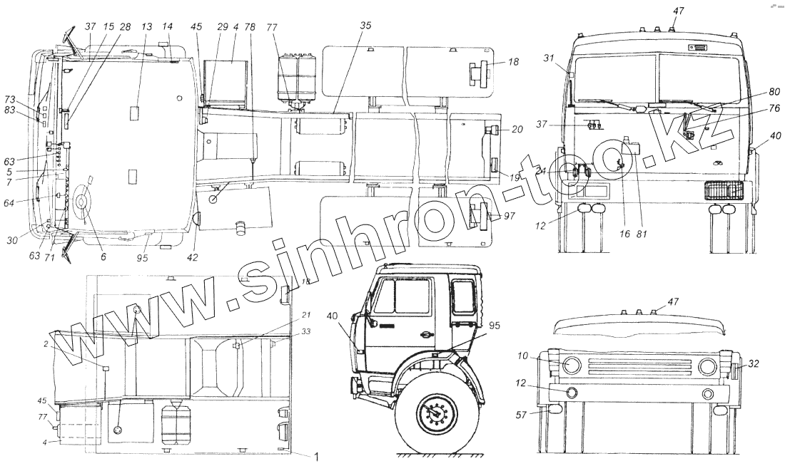 Каталог запасных частей к технике: Камский автозавод 4326. Электрооборудование. Расположение на автомобиле