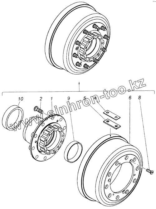 Каталог запасных частей к технике: Камский автозавод 4326. Ступица колеса с барабаном тормоза