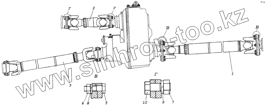 Каталог запасных частей к технике: Камский автозавод 4326. Установка карданных валов