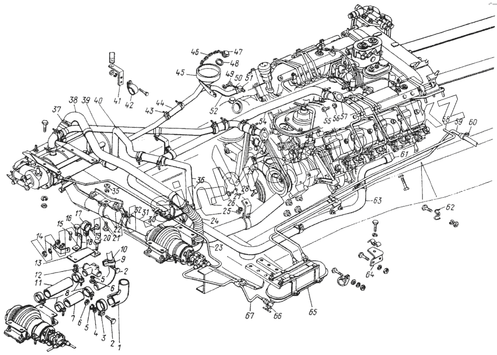 Каталог запасных частей к технике: Камский автозавод 4326. Установка предпускового подогревателя ПЖД-30