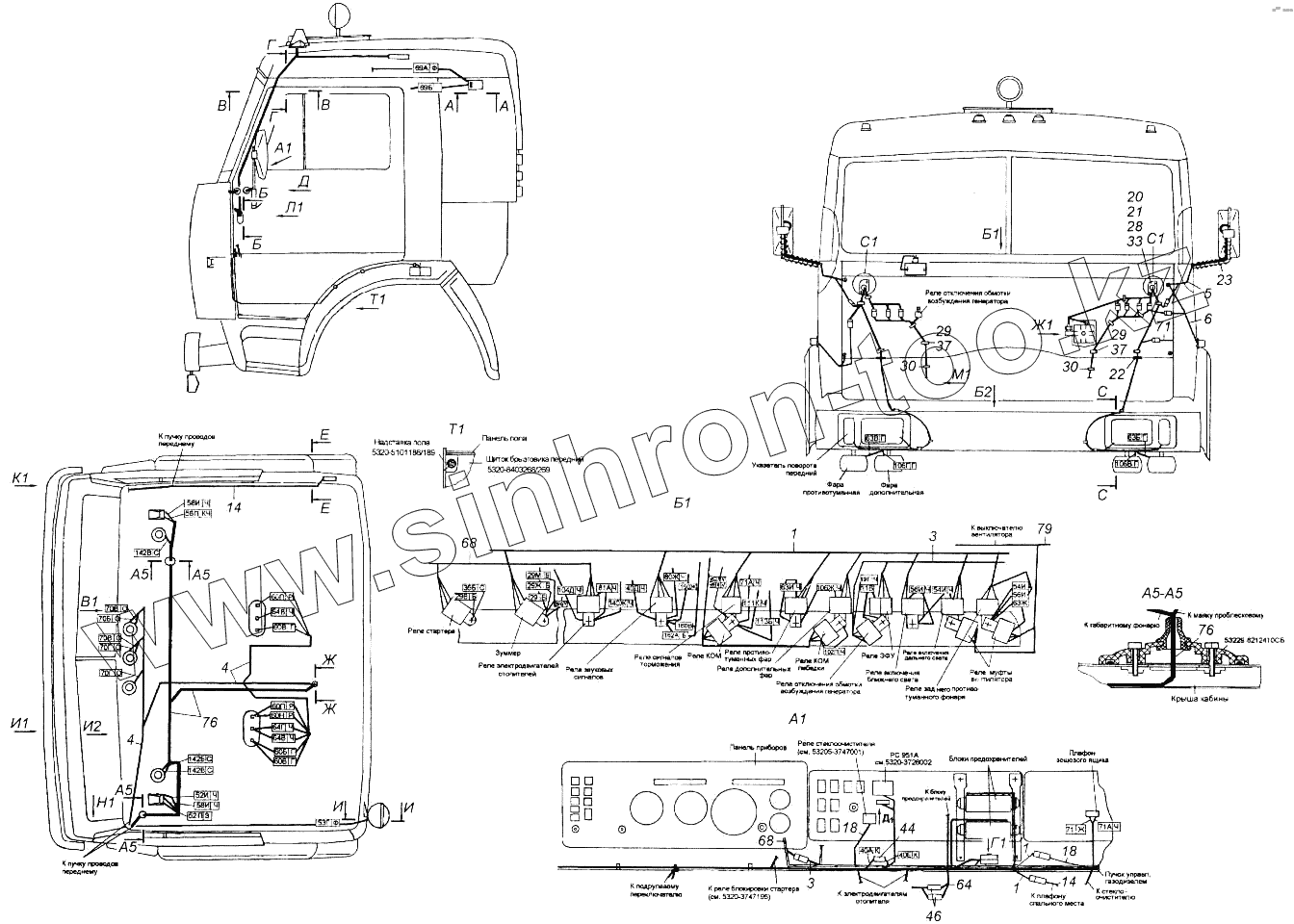 Каталог запасных частей к технике: Камский автозавод 4326. Установка проводов на кабине