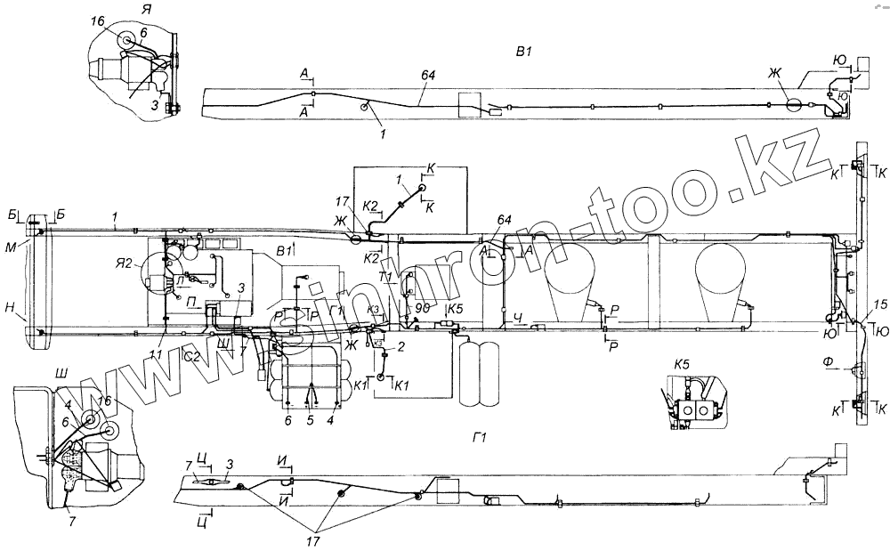Каталог запасных частей к технике: Камский автозавод 4326. Установка проводов на шасси