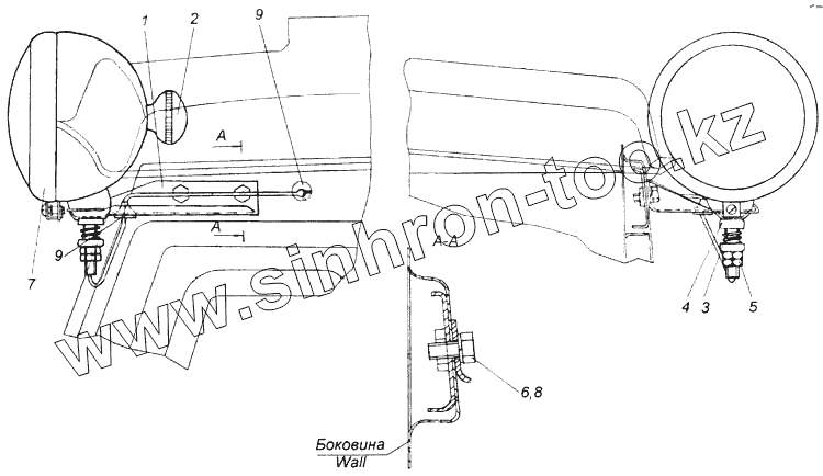 Каталог запасных частей к технике: Камский автозавод 4326. Установка прожектора
