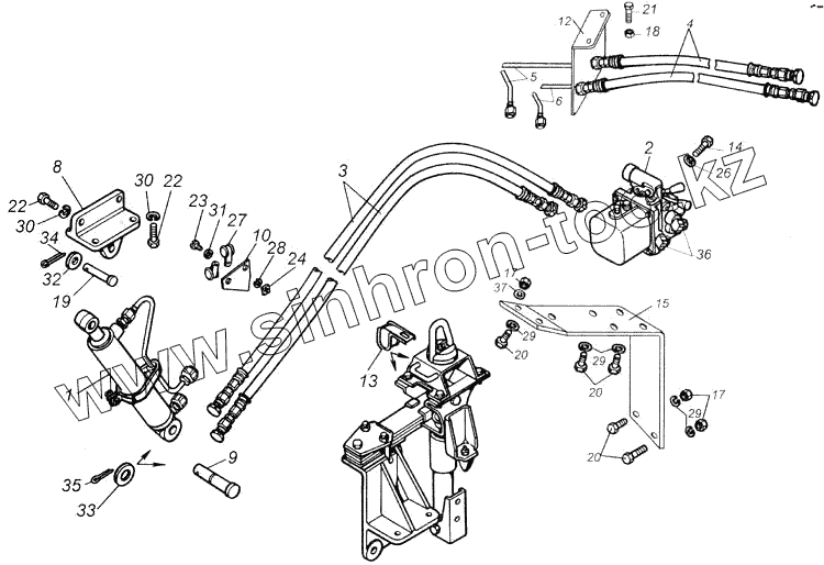 Каталог запасных частей к технике: Камский автозавод 4326. Установка цилиндра и трубопроводов опрокидывающего механизма кабины