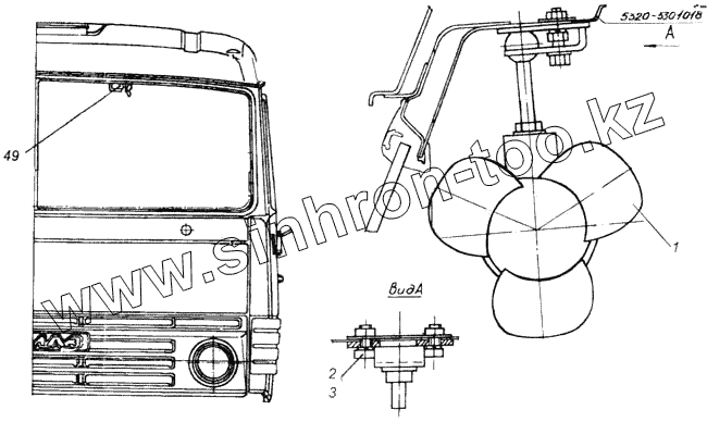 Каталог запасных частей к технике: Камский автозавод 4326. Установка вентилятора кабины