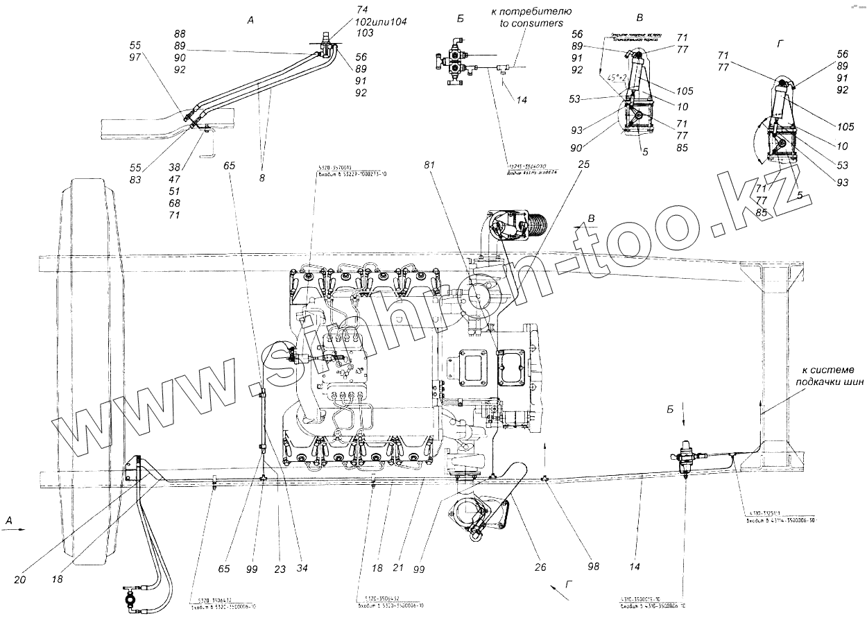 Каталог запасных частей к технике: Камский автозавод 4326. Установка вспомогательного тормоза