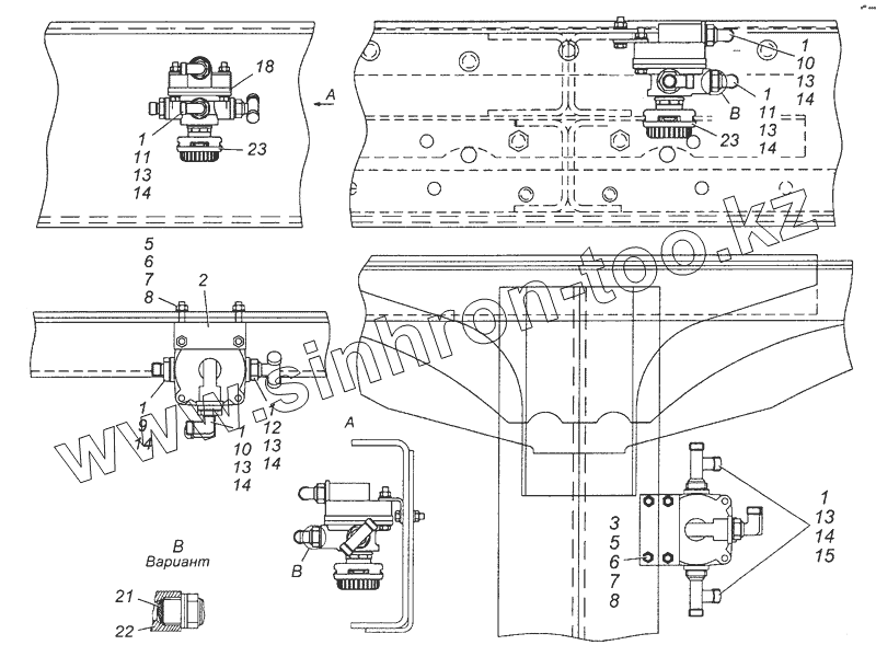 Каталог запасных частей к технике: Камский автозавод 43501 (4х4). 43101-3500018 Установка ускорительных клапанов