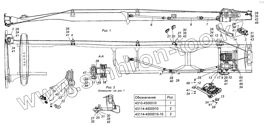 Каталог запасных частей к технике: Камский автозавод 43501 (4х4). 4310-4500010 Установка лебедки