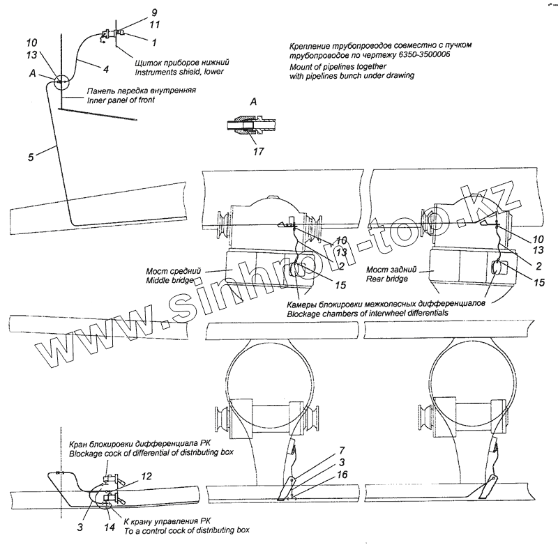 Каталог запасных частей к технике: Камский автозавод 43501 (4х4). 6350-2411022 Привод блокировки межколесных дифференциалов