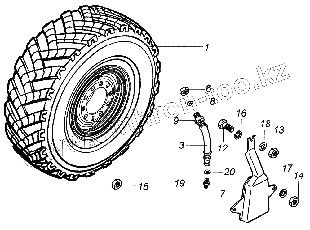 Каталог запасных частей к технике: Камский автозавод 43502 (Евро 4). 4310-3101002-20 Установка колес