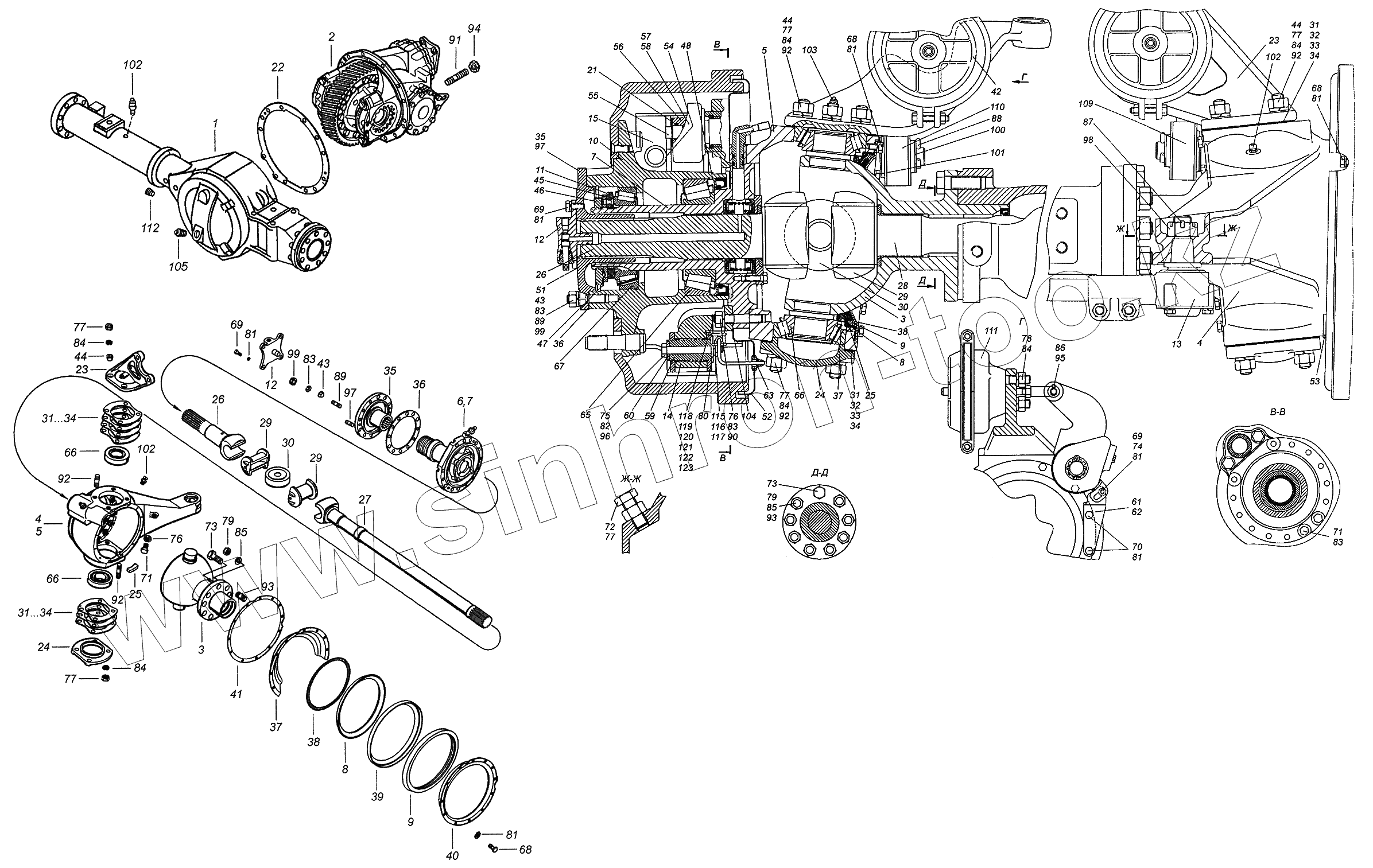 Каталог запасных частей к технике: Камский автозавод 43502 (Евро 4). 43114-2300022-10 Мост передний