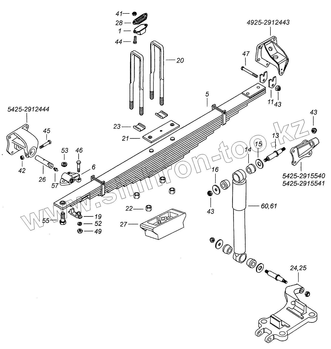 Каталог запасных частей к технике: Камский автозавод 43502 (Евро 4). 4326-2900002 Установка задней подвески