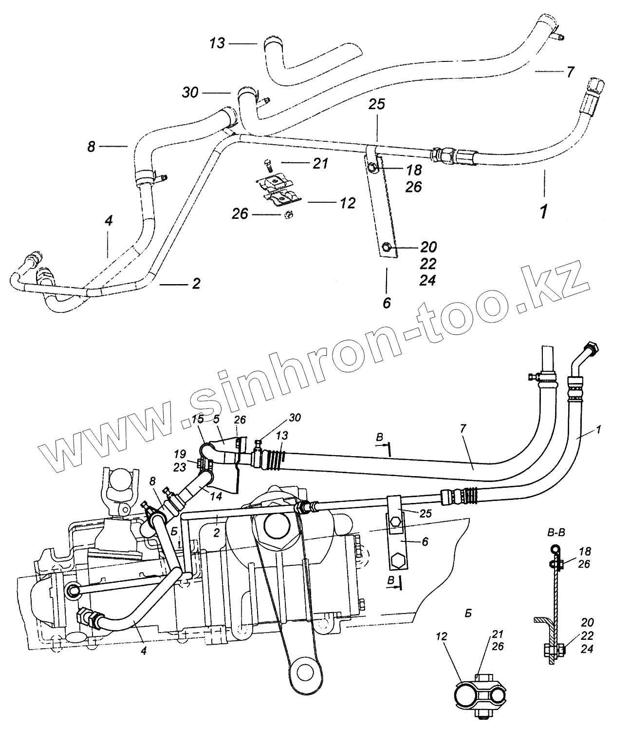 Каталог запасных частей к технике: Камский автозавод 43502 (Евро 4). 53205-3400018-30 Установка трубопроводов