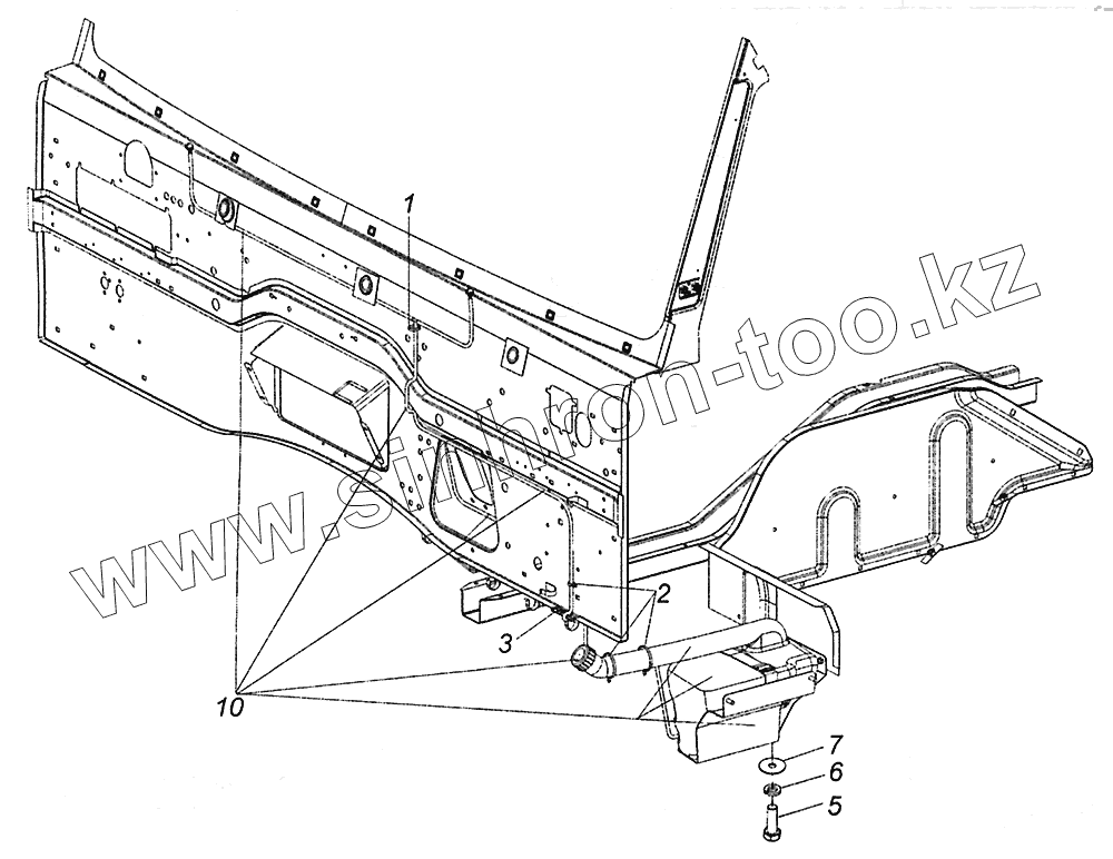 Каталог запасных частей к технике: Камский автозавод 43502 (Евро 4). 65115-5208004 Установка омывателя