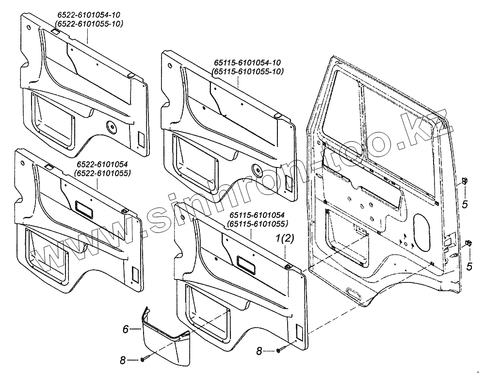 Каталог запасных частей к технике: Камский автозавод 43502 (Евро 4). 65115-6102005 Установка обивок двери