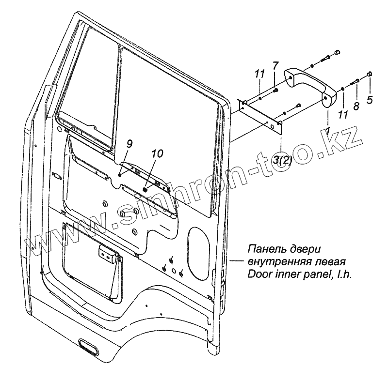 Каталог запасных частей к технике: Камский автозавод 43502 (Евро 4). 65115-6114005 Установка подлокотников двери