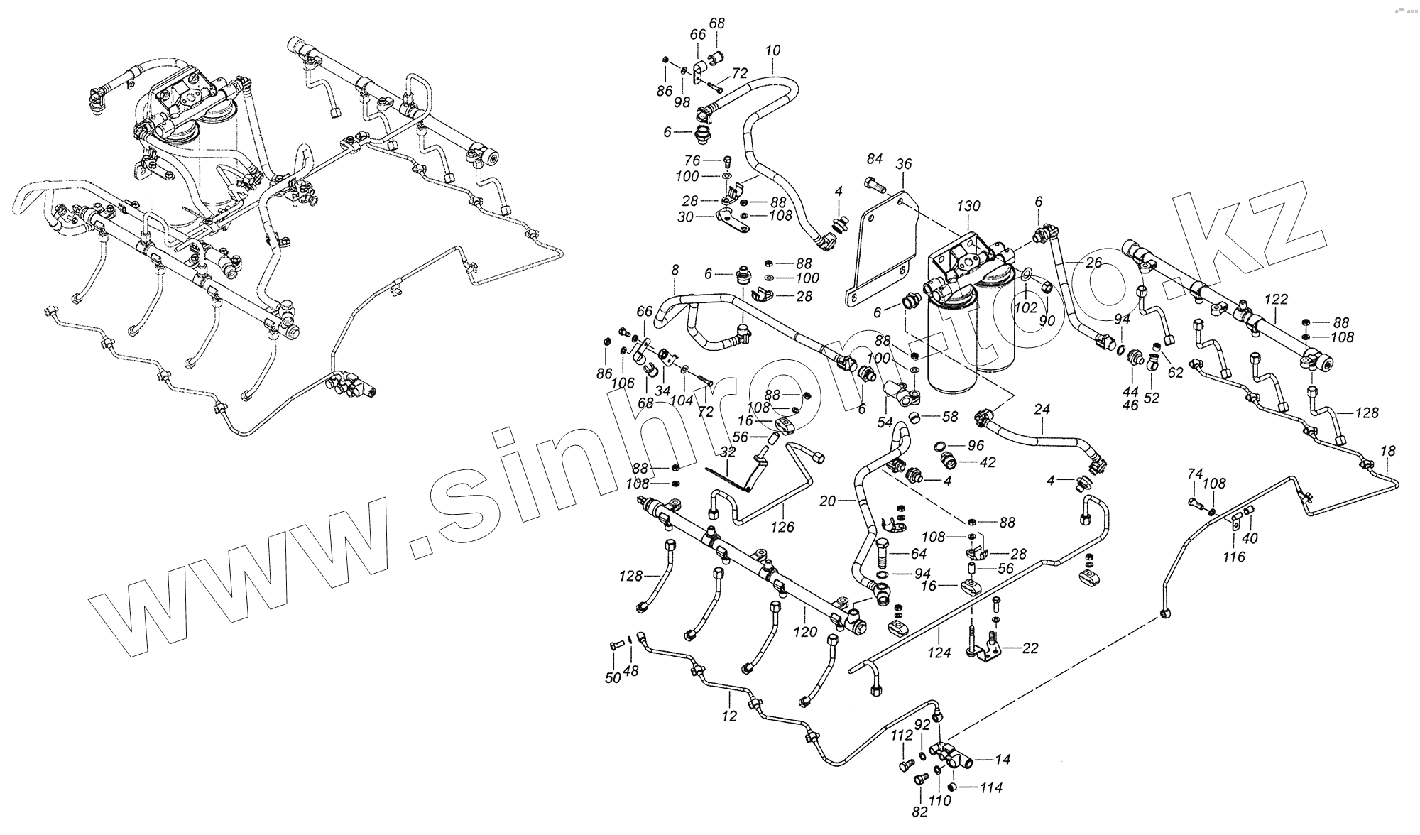 Каталог запасных частей к технике: Камский автозавод 43502 (Евро 4). 740.70-1104000 Установка топливопроводов