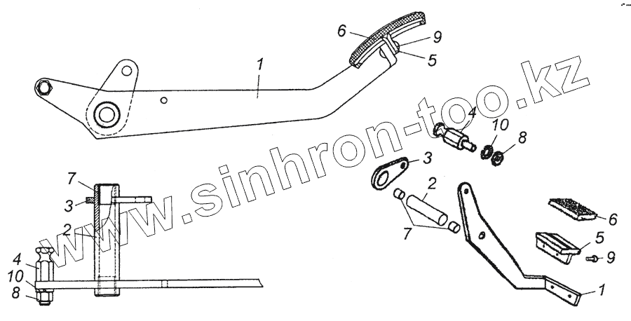 Каталог запасных частей к технике: Камский автозавод 4350 (4х4). 53205-1602010 Педаль сцепления