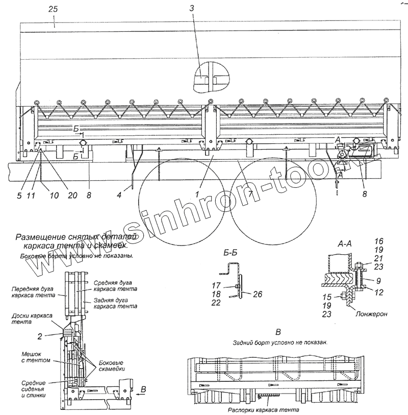 Каталог запасных частей к технике: Камский автозавод 4350 (4х4). 5350-8500008-75 Установка платформы
