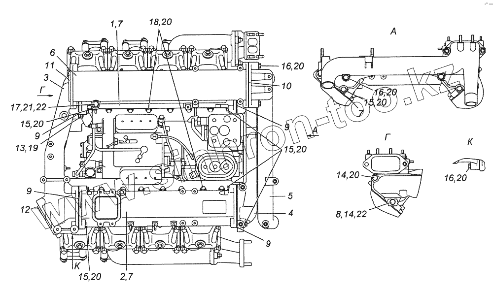 Каталог запасных частей к технике: Камский автозавод 4350 (4х4). 7406.1115000-30 Установка системы впуска