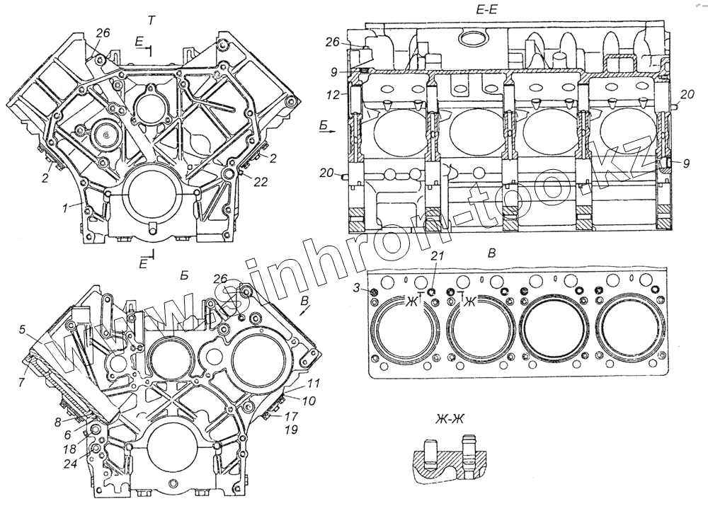 Каталог запасных частей к технике: Камский автозавод 4350 (4х4). 740.50-1002010 Блок цилиндров