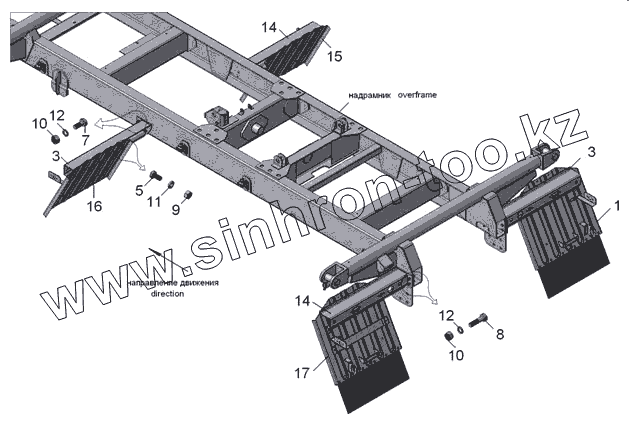 Каталог запасных частей к технике: Камский автозавод 45142. 45142-8400004 Установка брызговиков