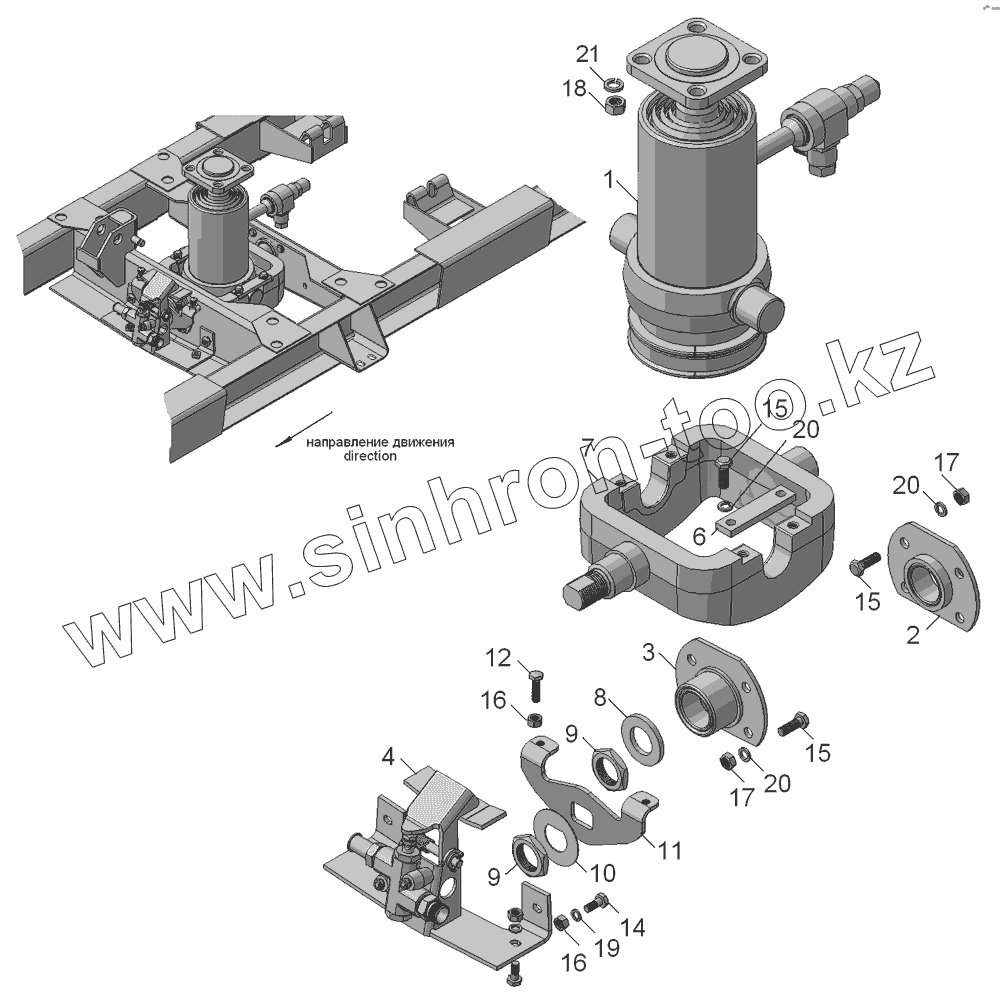 Каталог запасных частей к технике: Камский автозавод 45143. 45143-8603001 Установка гидроцилиндра