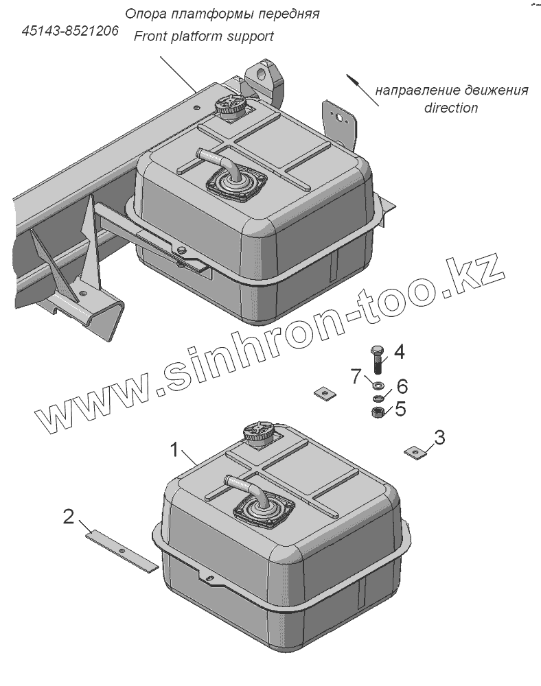 Каталог запасных частей к технике: Камский автозавод 45143. 45143-8608001 Установка масляного бака