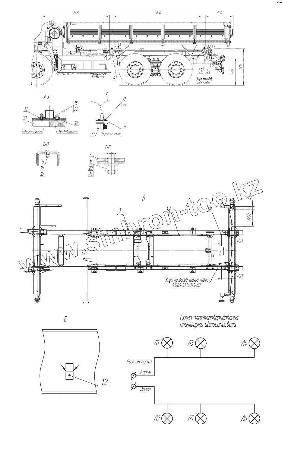 Каталог запасных частей к технике: Камский автозавод 45143. 55102-3731001-80 Установка боковых габаритных фонарей