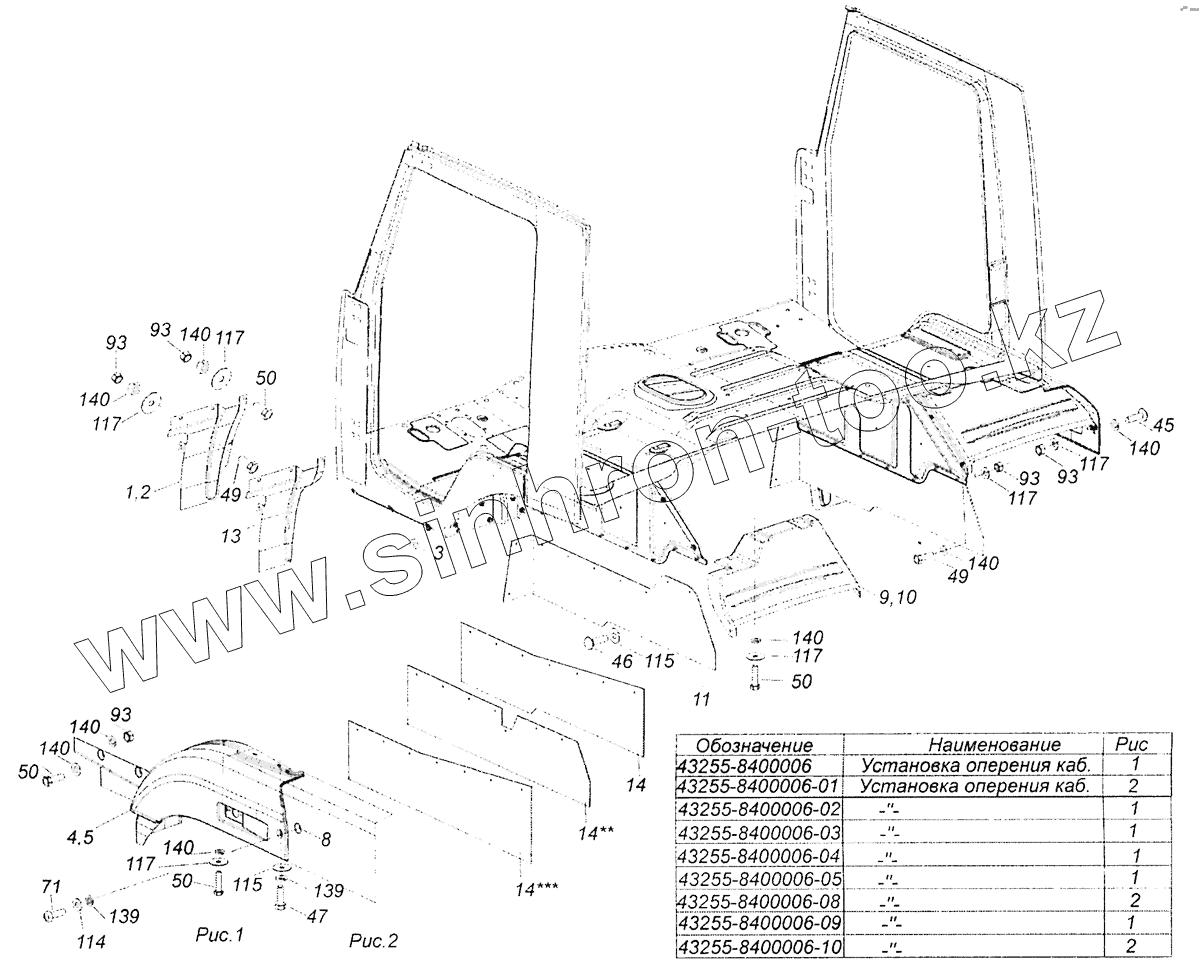Каталог запасных частей к технике: Камский автозавод 5308 (Евро 3). 43255-8400006 Установка оперения кабины