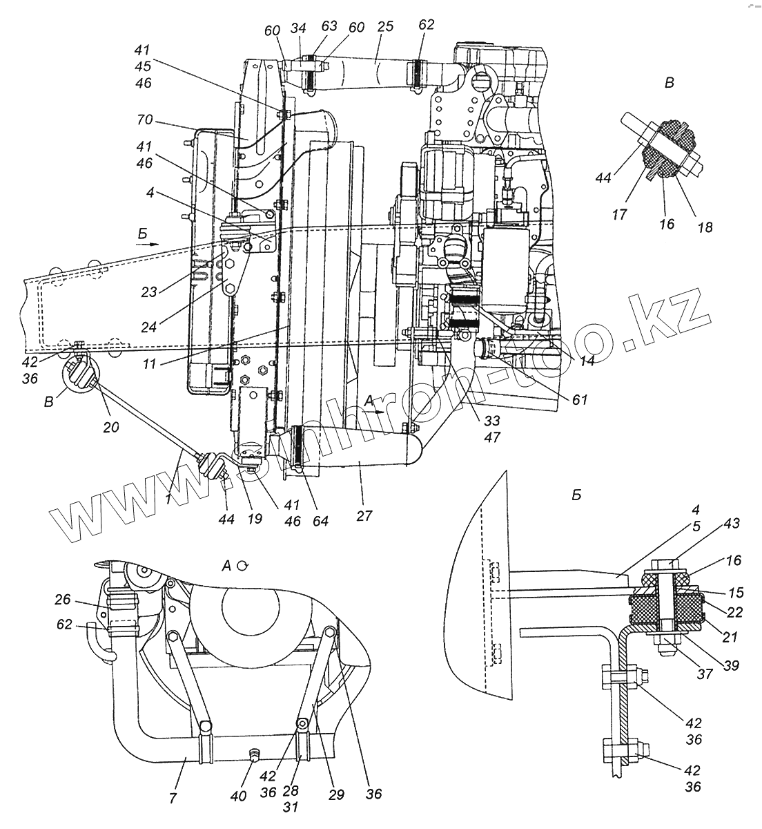Каталог запасных частей к технике: Камский автозавод 5308 (Евро 3). 5308-1300023 Установка радиатора