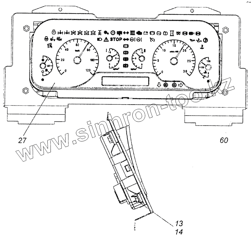 Каталог запасных частей к технике: Камский автозавод 5308 (Евро 3). 5308-3805010 Щиток приборов